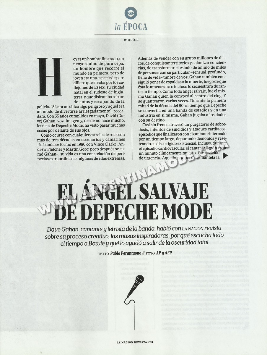 Gahan charló por teléfono con La Nación revista. Reacio