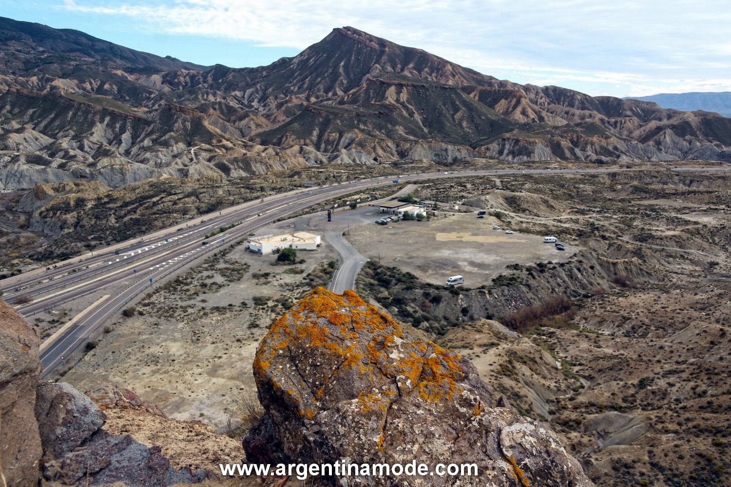 servicio, la autopista y, de fondo, el cerro